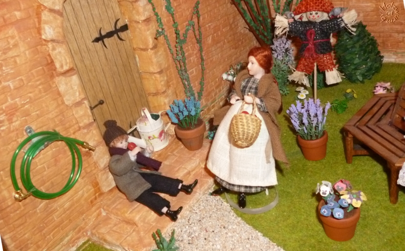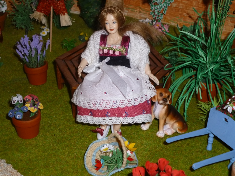 Frühling im Garten hinter der Stadtmauer B 73 x T 42 x H 30 cm springtime in the garden behind the town wall