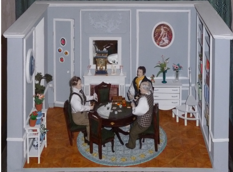 kleiner Salon mit Kartenspieler ((Herbst 2015) B 44 x T 30 x H 27 cm small saloon with card player